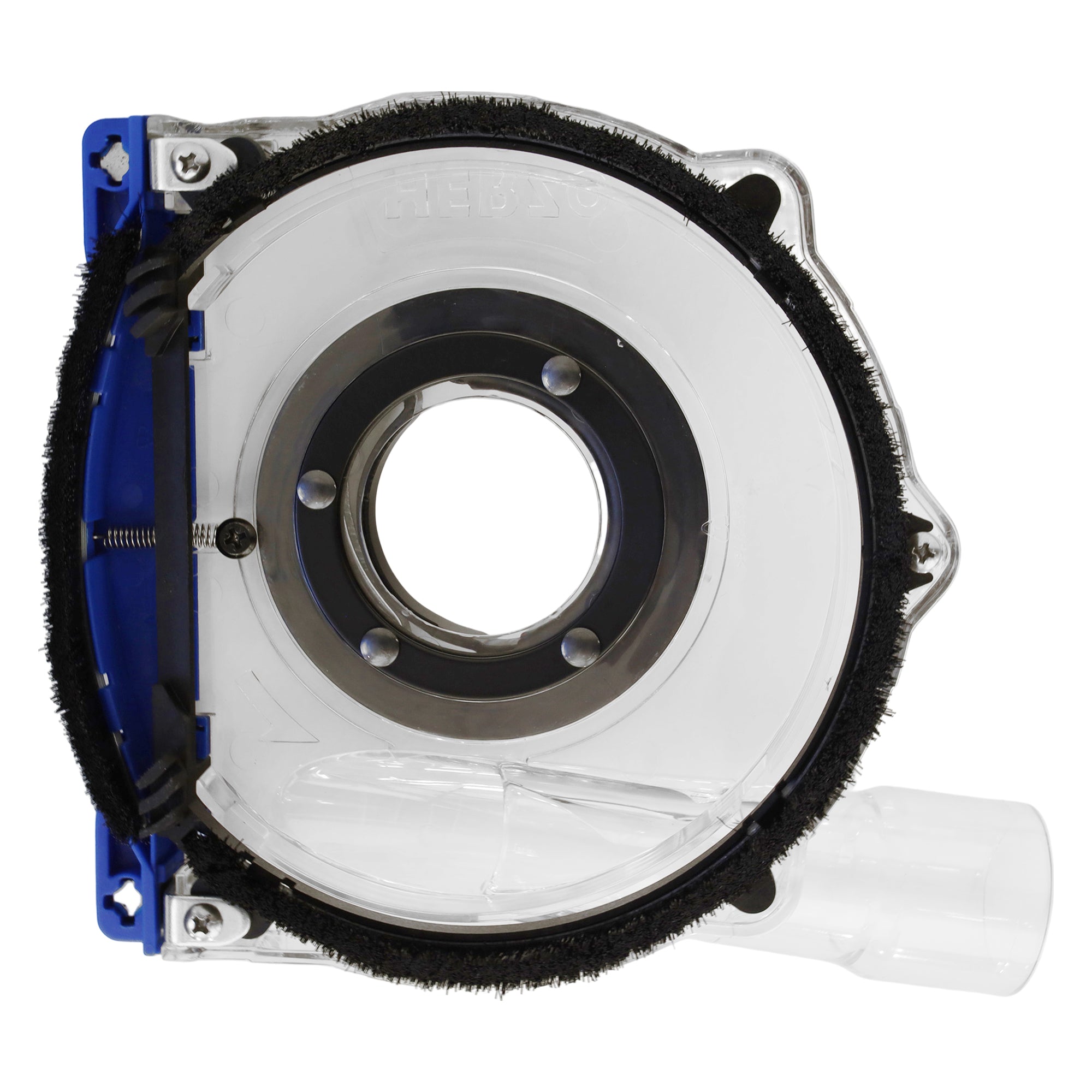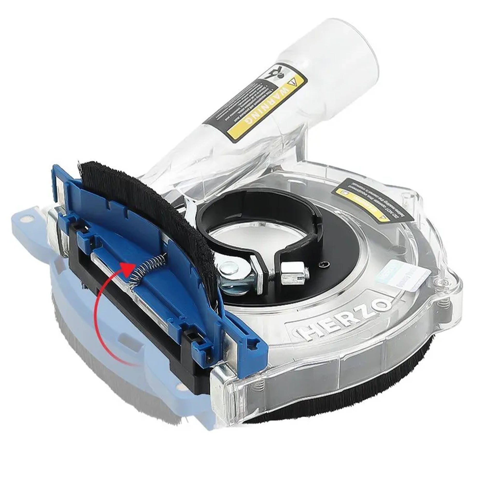 The HERZO HDE45X grinding dust shroud controls dust at the source for concrete and masonry grinding. A clear top improves visibility, while the brush‑ring seal and front vacuum port capture debris efficiently. Designed for 125mm (5") cup wheels and fits most 4‑1/2"–5" angle grinders depending on guard/flange design.